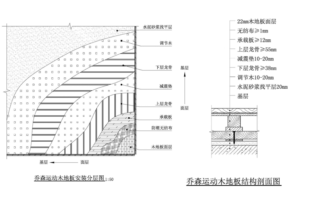 数据说明:在运动地板上的篮球的反弹高度至少为坚实水泥地面的90%,该项指标设计的运动时的姿势和力度掌控,满足运动快节奏需求。